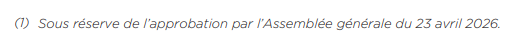 Le détachement du coupon doit intervenir le 4 mai 2026, et le paiement du dividende le 6 mai 2026.